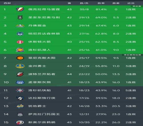 西部最新积分榜